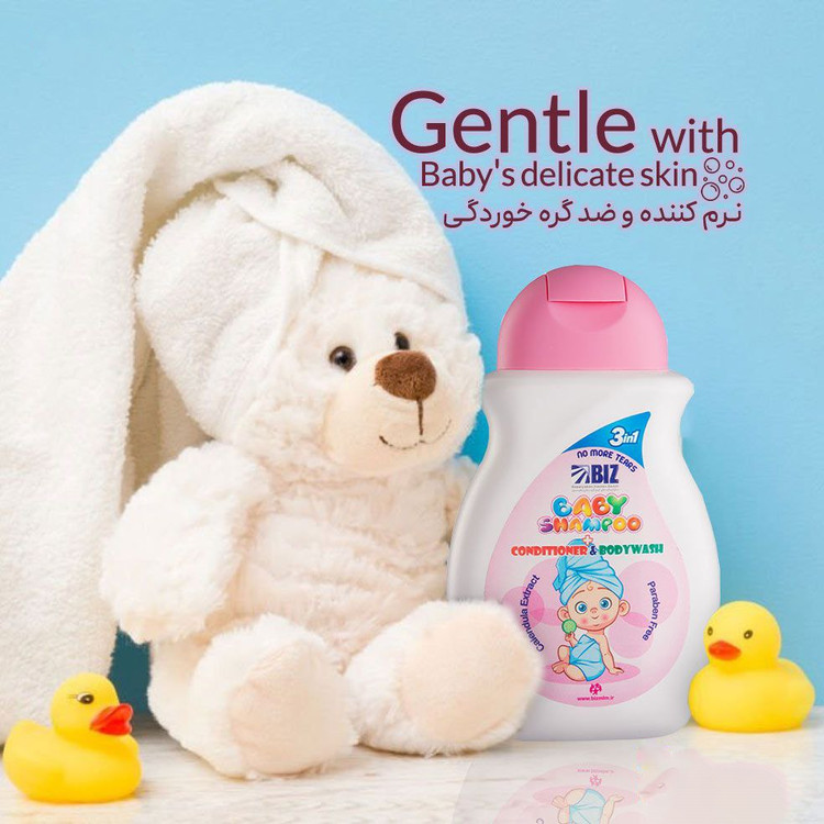 مقداری از شامپو بچه بیز را روی سر و بدن مرطوب شده کودک ریخته و ماساژ دهید، سپس با آب کافی شستشو دهید.